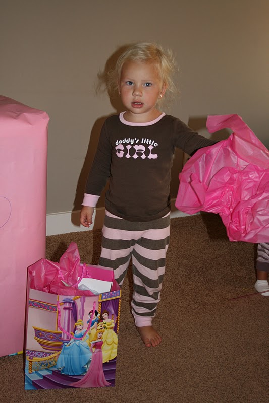 Then she opened her playhouse....which was less than climactic. ha ha she opened it and said "Oh my house!" and started playing with it. Not much fanfare! but she has been really excited whenever someone comes over to see it....and plays in in constantly so I guess that makes up for the lame reaction!